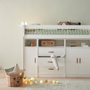 Crafted from solid Scandinavian pine, this high sleeper is built for durability, safety, and timeless style. With adjustable staircase positioning and a sleek, modern design, it’s a versatile choice that grows with your child.