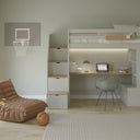 This loft bed is more than just a place to sleep — it's a multifunctional space that adapts to your child's needs. Whether it's homework, reading, or storing toys, everything has its place. The combination of form and function ensures that your child's room remains organised and stylish.