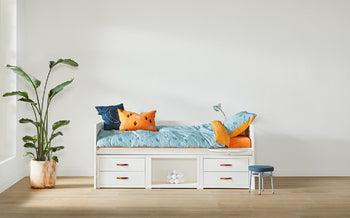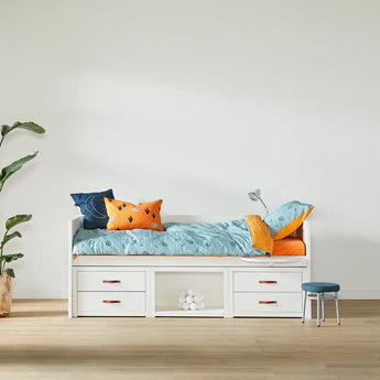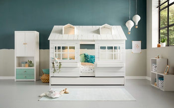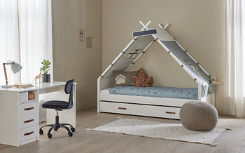 Keep everything in one place with this clever bed design – perfect for storing belongings, hosting sleepovers, and creating snug spaces to relax. As your child grows, they’ll love the extra storage for their treasures and the pull-out guest bed for fun nights with friends.
