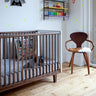 The Rhea Crib offers a combination of elegance and functionality. With sleek Scandinavian design features, the crib creates a stylish yet calm sleeping space for your new, adorable family member. Rich walnut tones pair with matte white for a versatile aesthetic ready to complement a range of decor.
