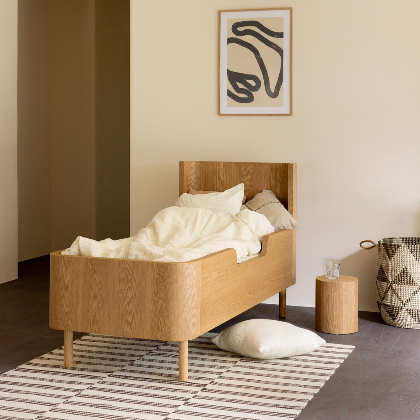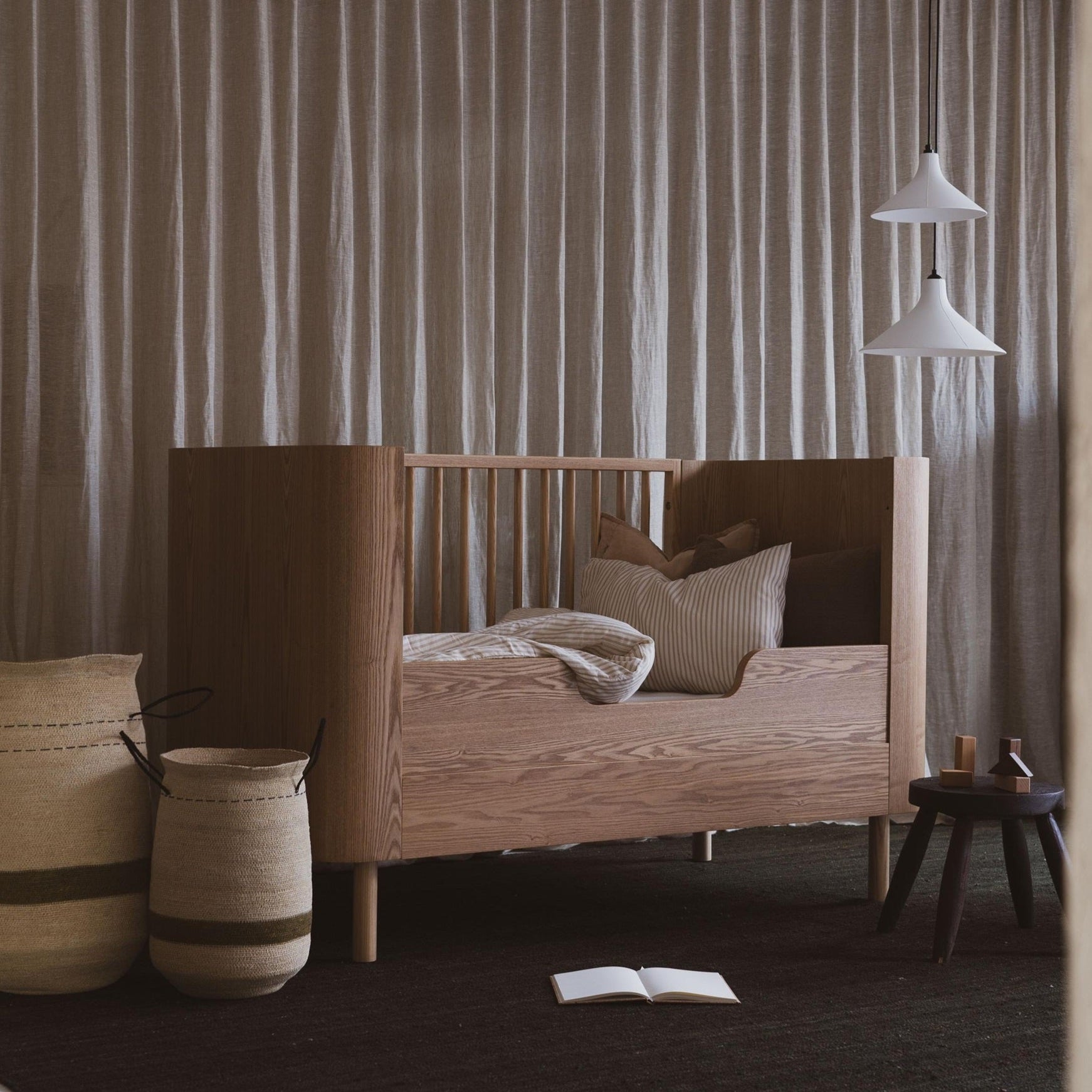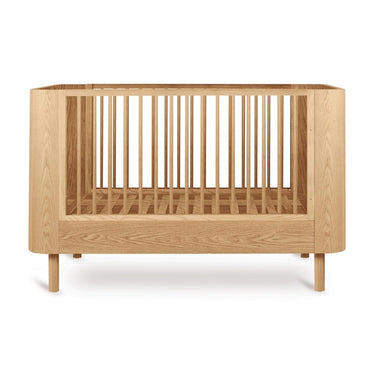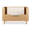 Create a warm and soothing nursery with the Quax Yume Cot, a beautifully crafted sleep space designed to grow with your little one. Its soft organic curves, natural ash wood, and refined detailing bring elegance and harmony to any room.
