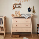 Turn the dresser into a beautiful changing station in no time; either by adding a Leander Linea changing unit, or a Leander Matty changing mat which can be placed directly on the dresser.