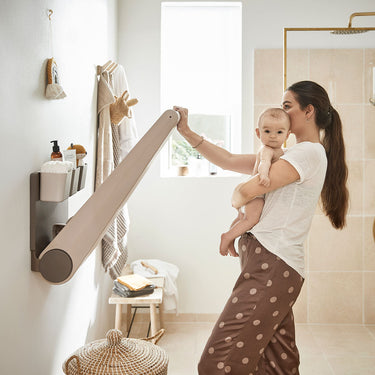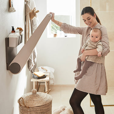 The award-winning Leander Wally Wall Mounted Changing Table is a smart, space-saving solution for modern family life. Inspired by a droplet, its light yet durable design folds neatly against the wall when not in use – perfect for nurseries, bathrooms, or compact living spaces.