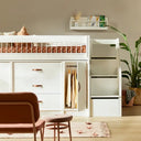 Make the most of your kid's space with Lifetime All in One Semi High Storage Bed! This ingenious design packs a cupboard, drawers and bookcase into one stylish pod - perfect for keeping everything tidy. Handcrafted from Scandinavian pine wood to order, this bed allows you to customize it with handles and ladder orientation – all while using sustainable materials. With its clever modular design that makes full use of every inch available, this will be an essential piece where beloved clothes, toys or stories can find their own spot without taking up extra room.