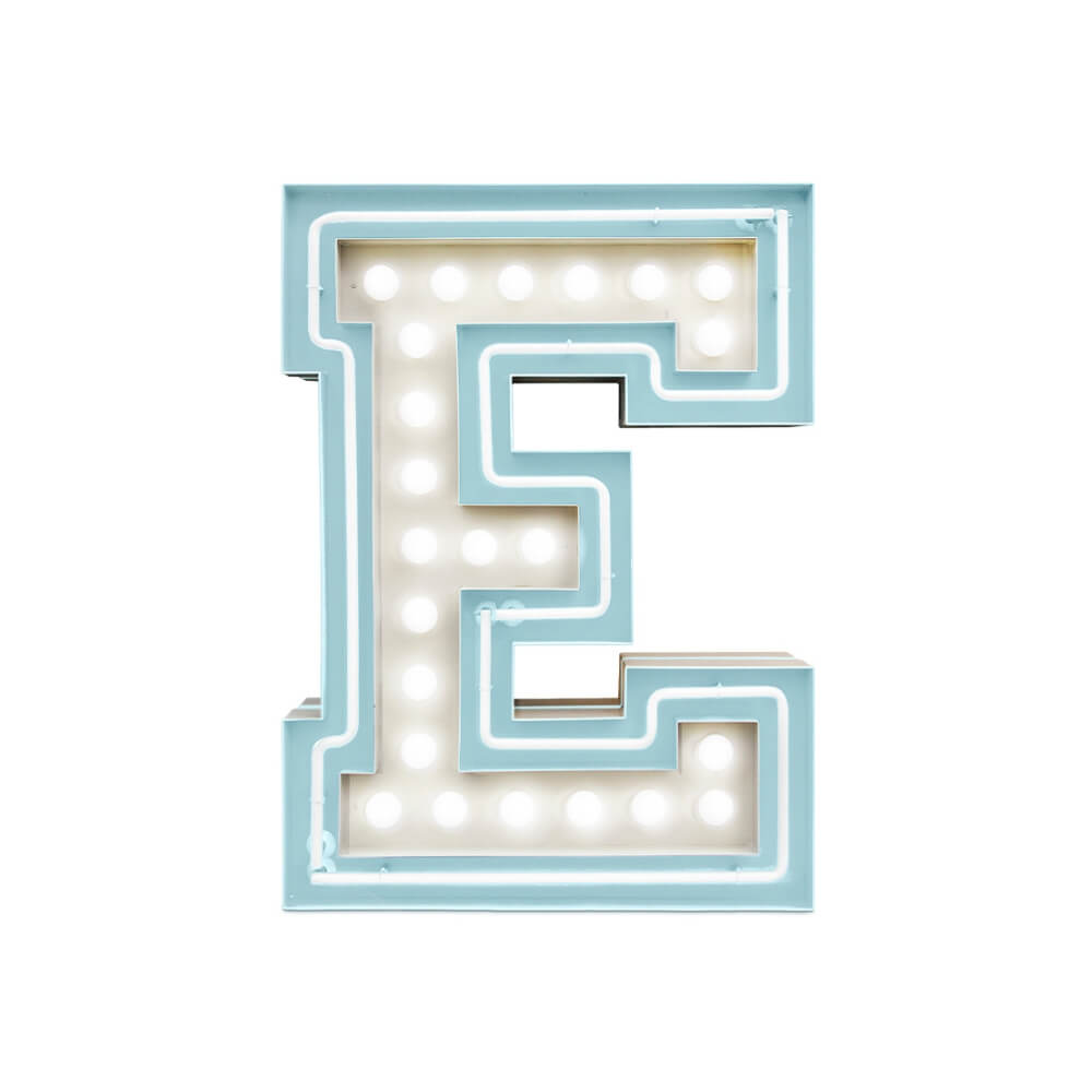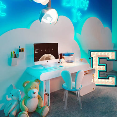 With 23 bulbs and a cyan neon outline, the Letter E brings an unmistakable glow that feels adventurous and dynamic. Its college-inspired typography offers a touch of nostalgia for parents, while children will instantly connect with its vibrant, cinematic presence—perfect for sparking stories, games, and endless imagination.