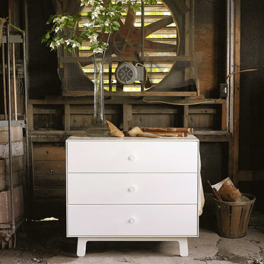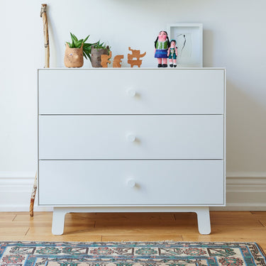The base and handles of the dresser follow the design of Oeuf NYC's signature Sparrow range, making it an ideal match for the Sparrow Cot Bed.