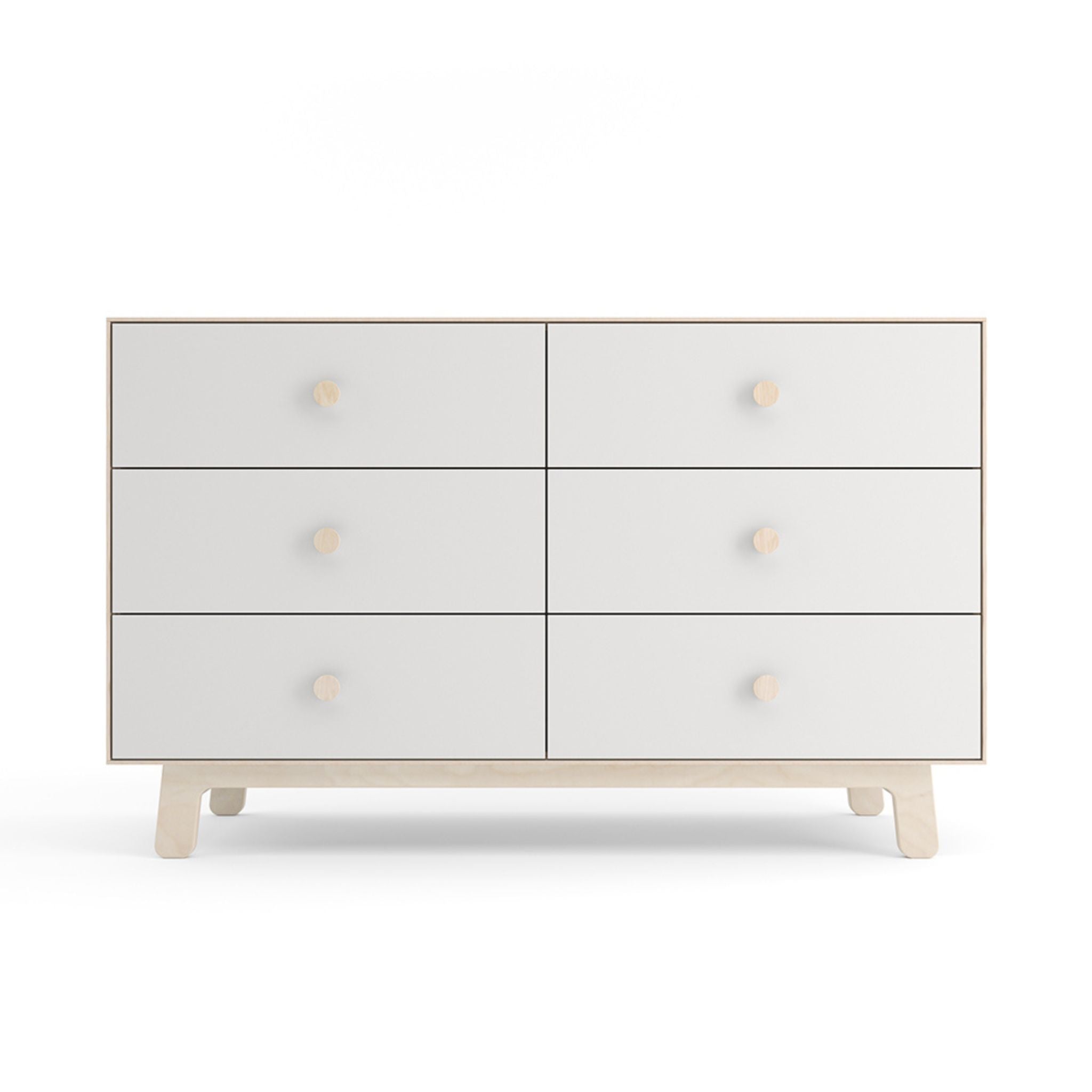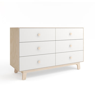 Bring effortless style to your space with the Oeuf NYC Merlin 6 Drawer Dresser in White/Birch. Cleverly concealed drawer glides preserve the dressers sleek silhouette, allowing the modern lines of the design to flow uninterrupted. This dresser features a base designed in the fashion of Oeuf's Sparrow collection, making it effortlessly compatible with the Sparrow crib.