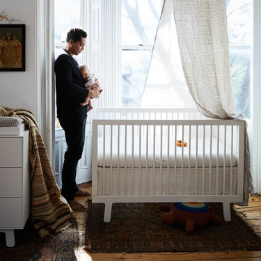 Oeuf NYC's Sparrow Cot Bed is defined by its unique lines and supremely durable birch-hardwood. With three adjustable mattress heights, the Cot Bed adapts to the needs of you and your baby to create the most comfortable early sleeping experience.