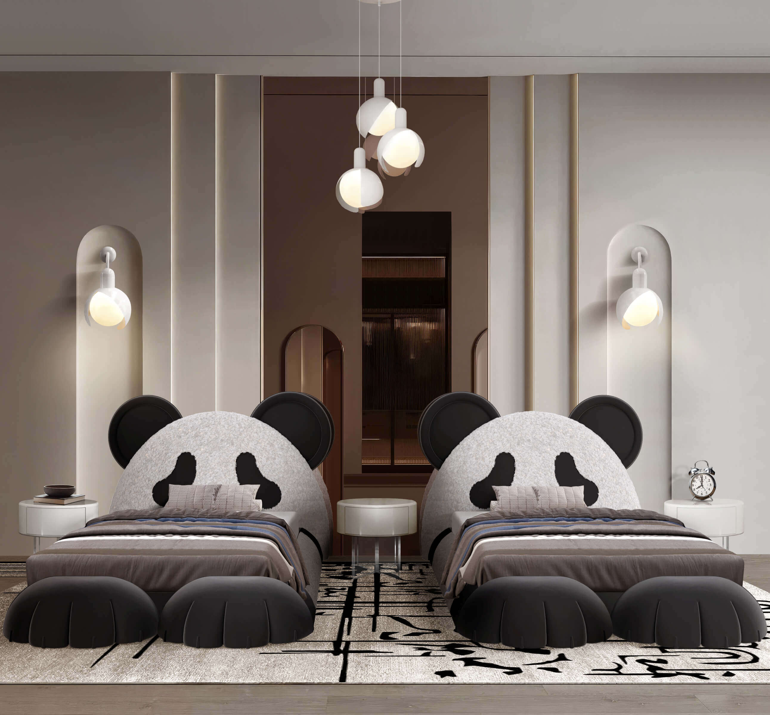 Crafted by Circu Magical Furniture, the Po Bed is upholstered in plush Paris Velvet for a rich, tactile feel. The face is detailed in soft Dolly 01 Wild White, while the eyes and paws are finished in Chronus Dark Black – capturing the lovable essence of a panda while maintaining a sophisticated design language suited to stylish family homes.