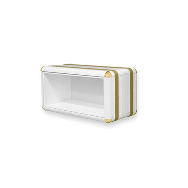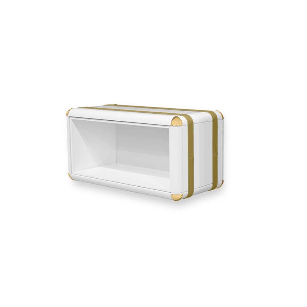 Expertly crafted from wood lacquered in glossy white, with accents in synthetic leather and metal parts finished in gold or nickel, the Fantasy Air Shelf is a standout addition to any aviation- or adventure-themed room. Its adaptable design allows it to be mounted vertically or horizontally, with a secure wall-fixation system included, giving you full freedom to style it your way.