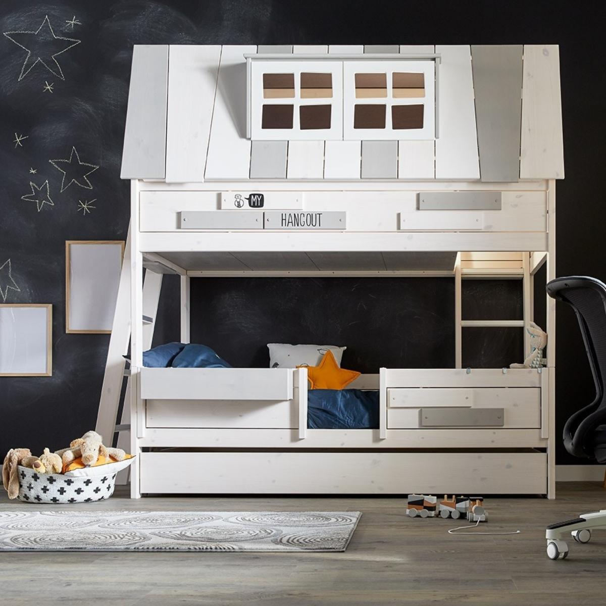 The Adventure Hangout Kids Bed by Lifetime is so much more than just a bed! It is, in fact, an entire home! This stylish bed features opening sash windows in the top and an internal ladder to get to the secret little den in the top bunk, perfect for your little ones to play make-believe! With the option to add a hanging box, it's the ideal spot for storing your little one's books or treasures. You can even add an external ladder so your youngster will be able to choose how they get into their secret hideaway! Forget sleeping; this bed = fun time!