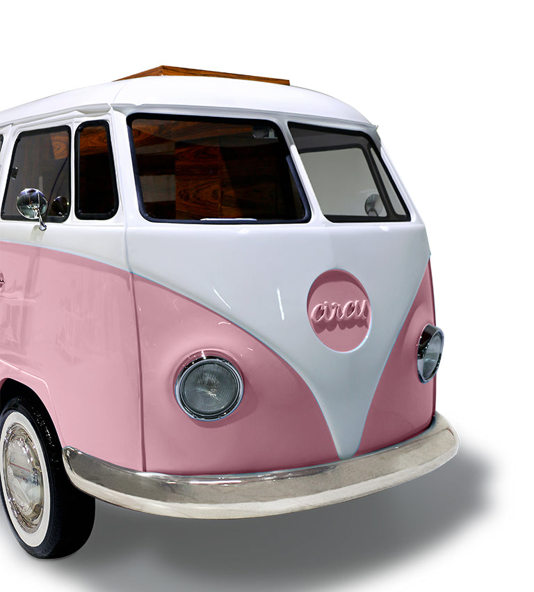 Elevate your child’s bedroom into a world of luxury and adventure with the Circu Bun Van Bed in Baby Pink. Inspired by the legendary 60’s camper van Fillmore from Disney’s “Cars,” this extraordinary bedroom set combines playful imagination with unmatched craftsmanship. Handcrafted in Portugal from premium palisander wood veneer and glossy fiberglass, it features chrome-plated accents that shimmer with elegance. The Bun Van Bed isn’t just a bed—it’s a fully immersive play and relaxation experience, complete with storage, a mini bar, TV, desk, and sofa, ensuring your child has the ultimate luxury bedroom sanctuary.