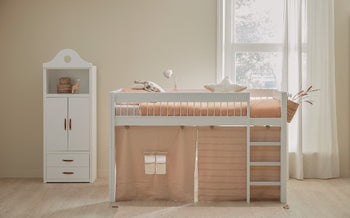 Keep everything in one place with this clever bed design – perfect for storing belongings, hosting sleepovers, and creating snug spaces to relax. As your child grows, they’ll love the extra storage for their treasures and the pull-out guest bed for fun nights with friends.