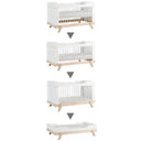 The crib grows with the child. Several beds are combined into one. The crib is essential in the child’s early years. It can be adjusted to be placed high in the crib so that the parents’ backs are spared as much as possible when the child needs to be lifted in and out of bed multiple times during those early years. Later, when the child can stand, crawl, and walk, the bed is adjusted to be placed at the bottom of the crib.
