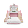 The bed rests at the heart of the playhouse, surrounded by a built-in staircase that leads to a snug upper level and a slide for exciting descents. Thoughtful external storage under the stairs keeps toys and treasures neatly tucked away, ensuring the room stays tidy without sacrificing style.
