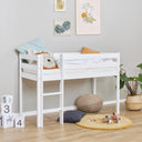 Available in three beautiful colours and untreated pine, this 70x160 cm mid sleeper fits seamlessly into any style of children’s room – from Scandinavian-inspired minimalism to warm, traditional family spaces.