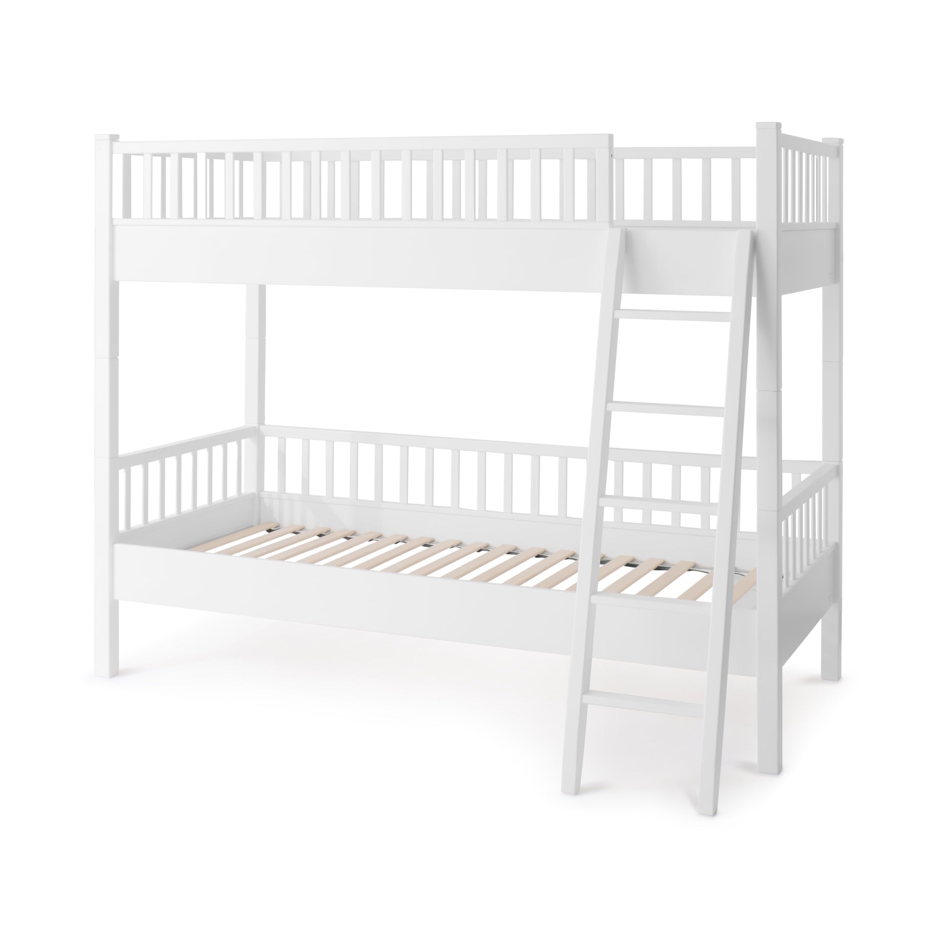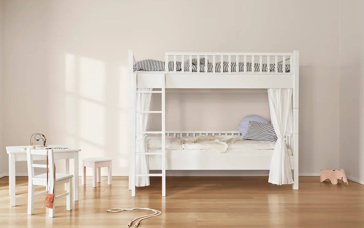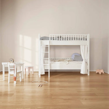 Expertly made from solid beech wood sourced from sustainable forestry, this elegant bunk bed offers remarkable stability and a naturally refined appearance. The white lacquered finish enhances the wood’s smooth texture, creating a crisp and modern look that suits both classic and contemporary interiors.