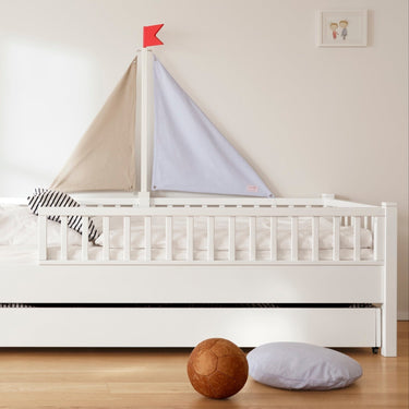 Easily and securely attachable to sofa beds, bunk beds or play beds, the guard can be flexibly mounted on either side, allowing you to choose the most convenient entry and exit point for your child.