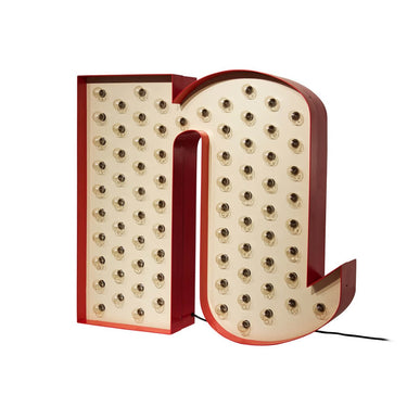 Handmade from aluminium and standing 1 metre tall, the Letter N Lamp is equipped with 42 E27 bulbs that can be controlled via an on-off-on switch, allowing selective illumination to suit your mood or setting. Customisable on request and available in a mini version, it is the perfect statement piece for bedrooms, playrooms, or creative interior projects.