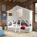 Bring storybook magic to life with the Mathy By Bols Treehouse Bunk Bed – a beautifully handcrafted design that turns bedtime into an imaginative escape. Made to resemble a rustic treehouse, this bunk bed features uneven wooden planks, charming window openings, and a cosy elevated sleeping area, offering children a space where adventure and relaxation coexist.