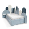 The bed also includes a built-in storage drawer beneath the mattress — the perfect place to tuck away blankets, books, toys, or bedtime essentials, keeping the room neat and organized without compromising style.