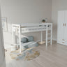 The generous 89 cm of under-bed space can be transformed into a reading nook, a secret hideaway, or a play corner that sparks imagination. With a ladder that can be placed on either the left or right, this versatile mid sleeper bed adapts effortlessly to your child’s room layout.