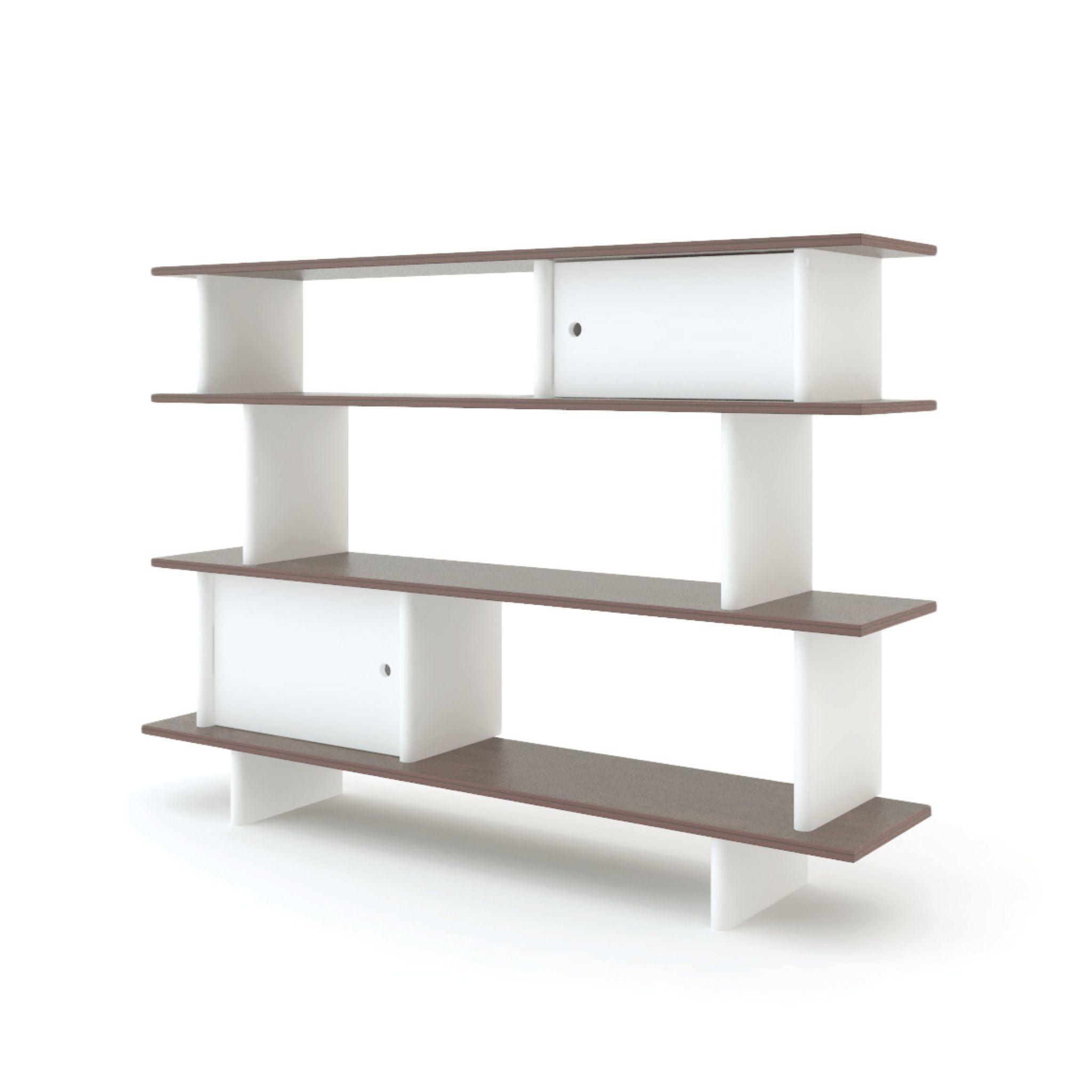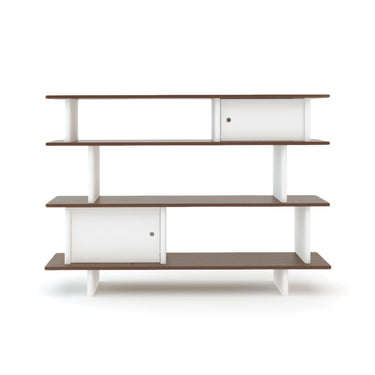 The thoughtful combination of open shelving and enclosed cubbies allows for endless array of display and storage possibilities. Combining white and a rich walnut tone for the finish, the Mini Library exudes quality making it a great choice for any room.