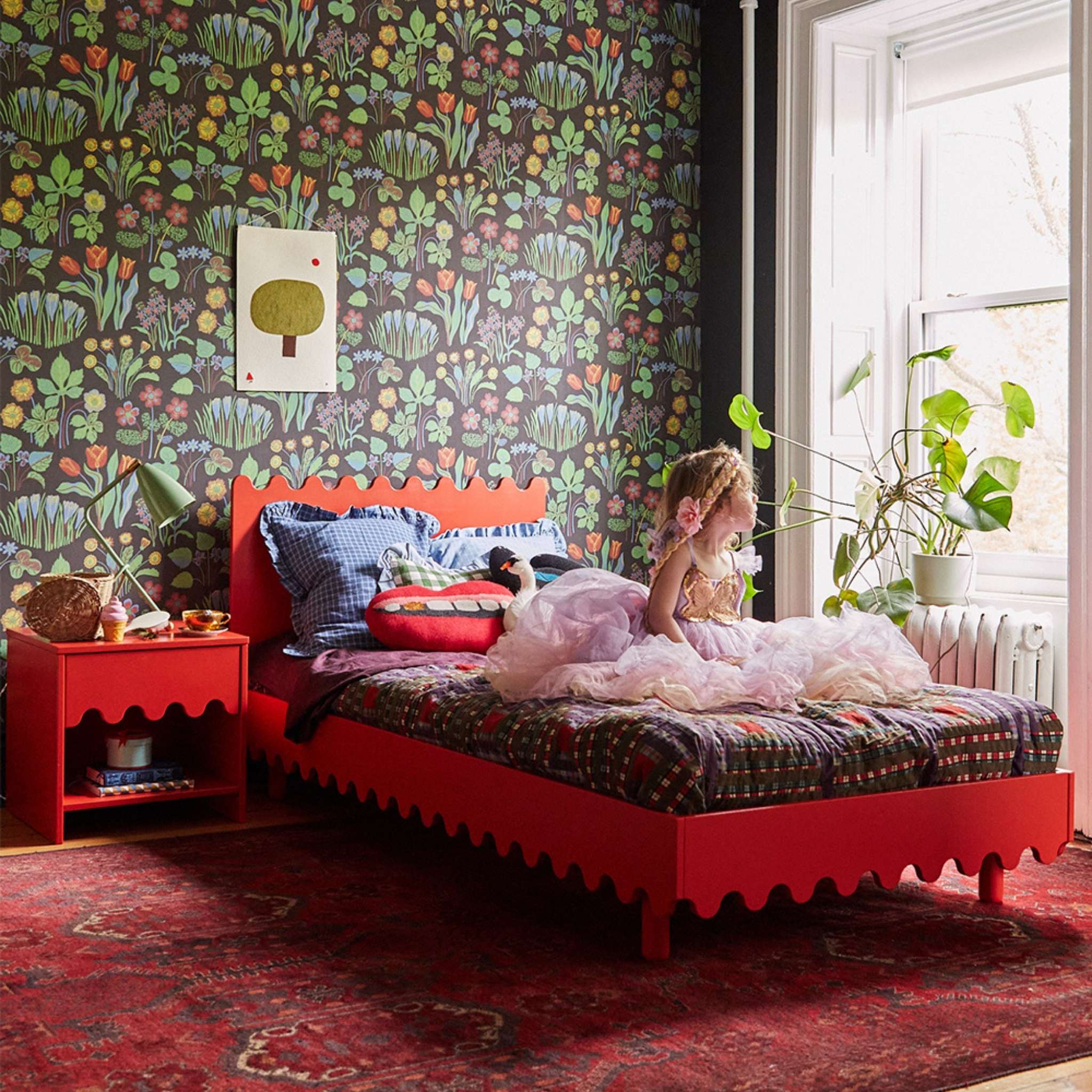 The Moss Single Bed in Tomato channels playfulness into furniture form. The bed's striking wave motif and bold colour makes an instant statement in any room. Ideal for slightly older children, the bed offers a beautiful base to support the adventure of childhood. As with all Oeuf NYC furniture, this bed is crafted in Europe with an emphasis on sustainable and ethical practices.
