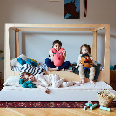 The Perch Trundle Bed provides a beautiful additional sleeping space to Oeuf NYC's Perch Bunk Bed . The Trundle Bed is ideal for sleepovers, providing little guests with a bed so cosy they'll feel instantly at home. This set comes with an additional Ladder Conversion Kit, allowing the ladder on the Perch Bunk Bed to hang vertically. This ensures free movement for the Trundle Bed.