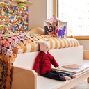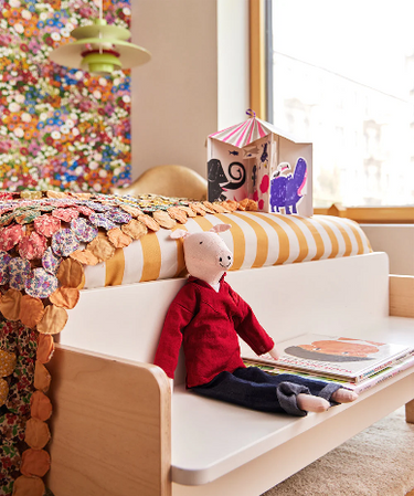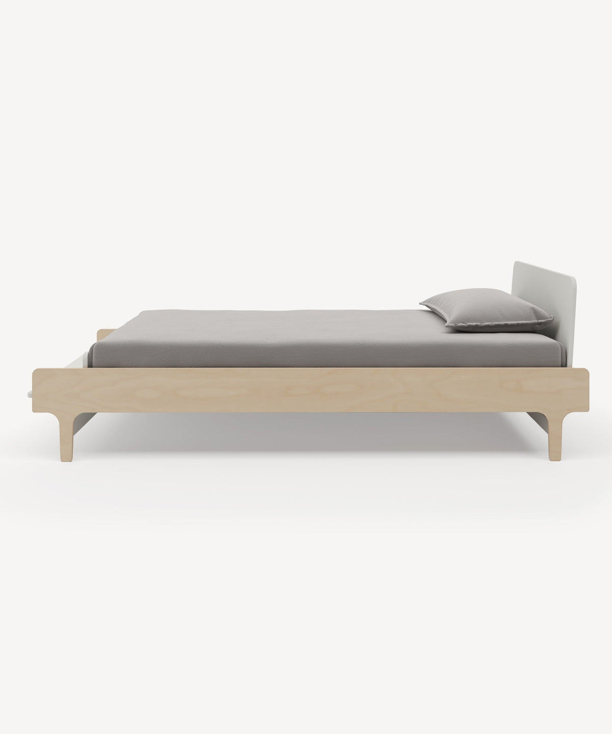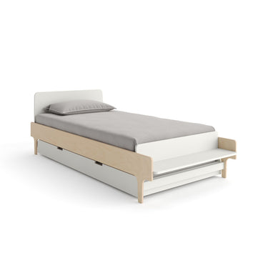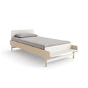 The River Single Bed is marked by its clean flowing lines and low profile, blending a White finish and warm Birch to create a stylish, inviting sleeping space. The Single Bed offers space and legroom as your little one gradually begins to outgrow the 'little' moniker, growing in personality at the same time. The design cleverly incorporates a small seating area at the foot of the bed, which can also be used as a low shelf.