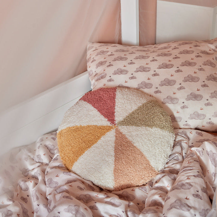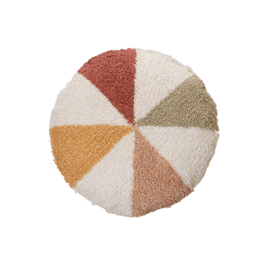 This colourful round cushion is made of tufted cotton and is therefore extra soft. It can be perfectly used as a backrest when sitting in bed. Made in collaboration with Lorena Canals.