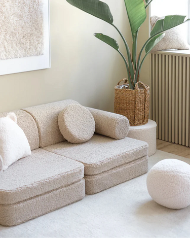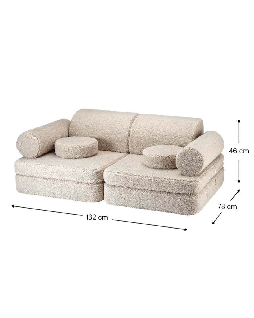 The Wigiwama Play Sofa in Biscuit offers a natural, calming tone for peaceful play and downtime. Designed with kids’ creativity in mind, this modular sofa is ideal for building forts, crafting quiet corners, or just relaxing. Its soft fabric and clever design make it an ideal choice for parents who value style and substance.