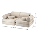 The Wigiwama Play Sofa is perfectly sized for imaginative play and everyday lounging. It measures 132 cm wide x 46 cm high x 78 cm deep (approximately 52 x 18.1 x 30.7 inches), making it an ideal fit for nurseries, playrooms, or shared family spaces. Weighing just 9 kg (19.8 lbs), it’s light enough to move around with ease—whether you're building a fort, creating a cosy reading nook, or simply tidying up.