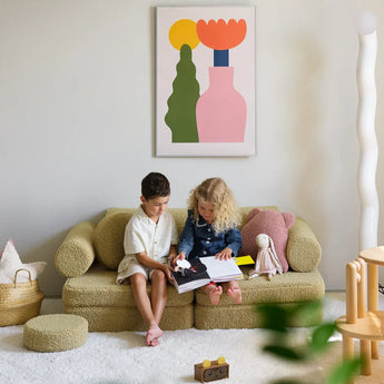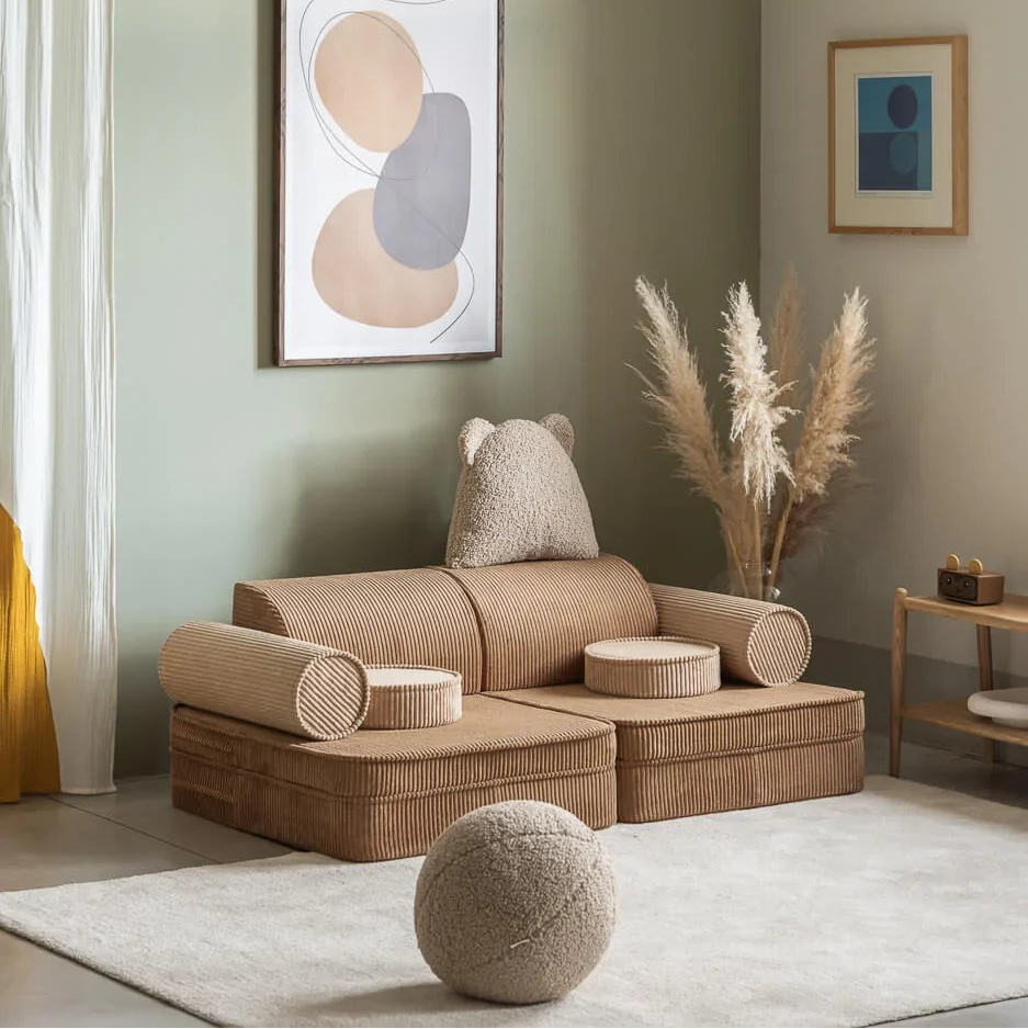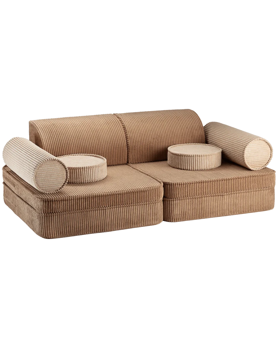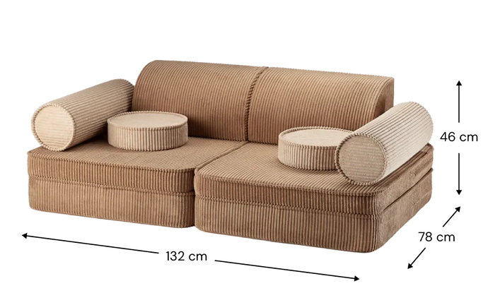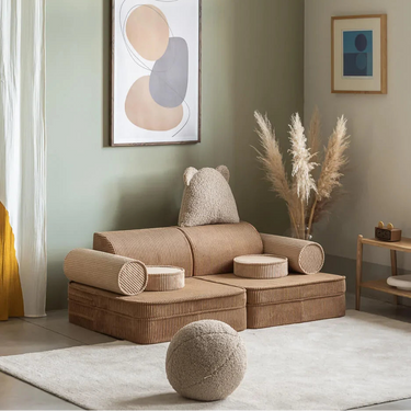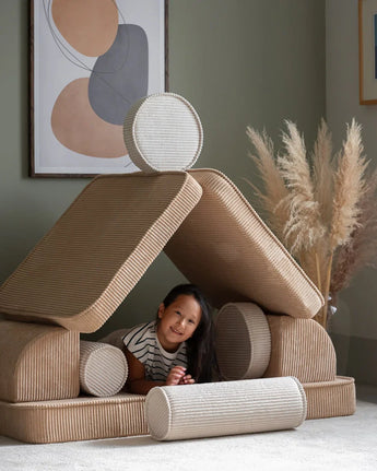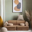 The Wigiwama Children's Play Sofa in Toffee adds golden charm to your child's room. Crafted for both play and rest, this modular sofa transforms into anything your child can dream up. Built with quality and comfort in mind, it offers a warm aesthetic and exceptional durability – making it a favourite for both kids and design-conscious parents.